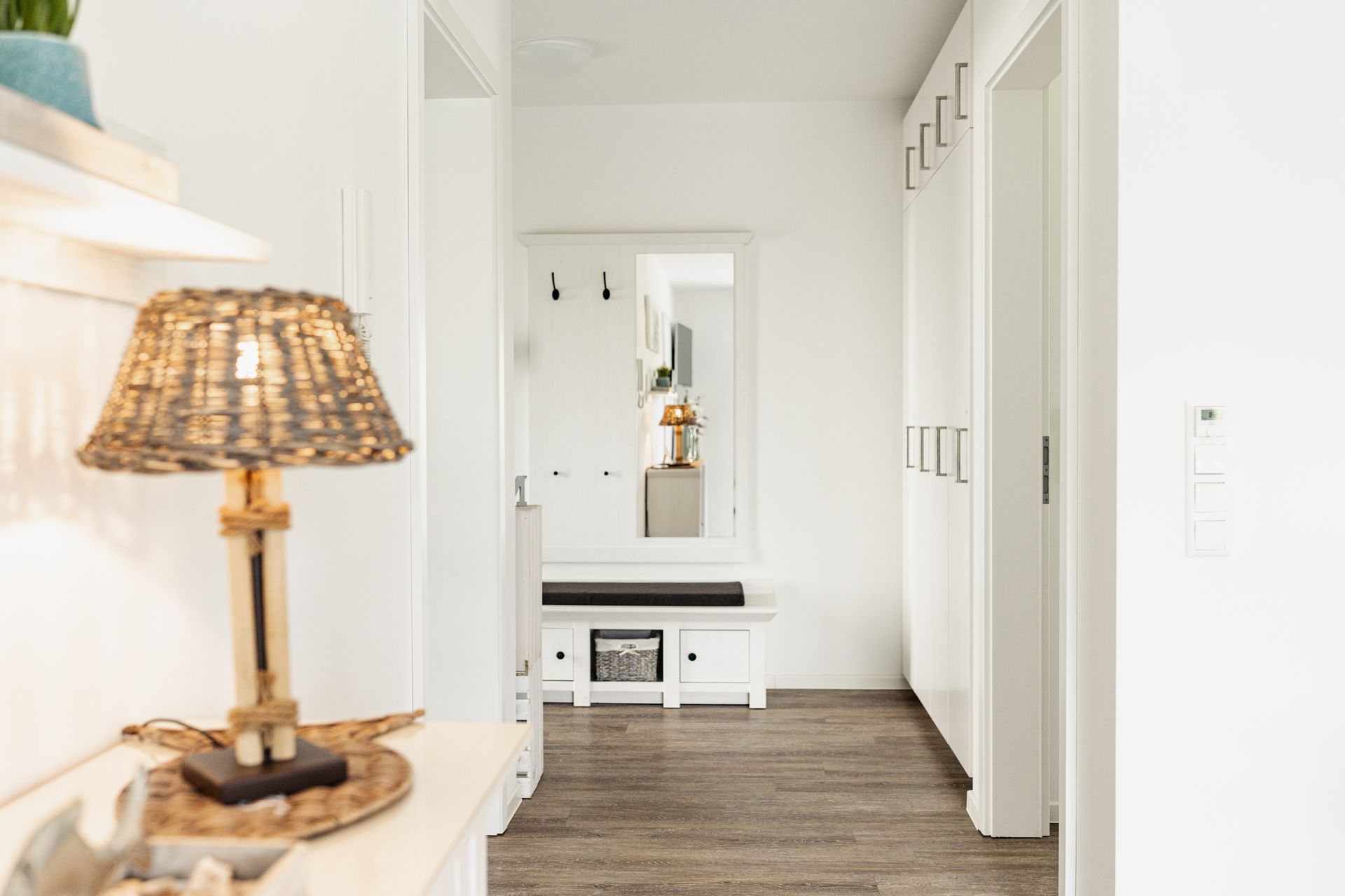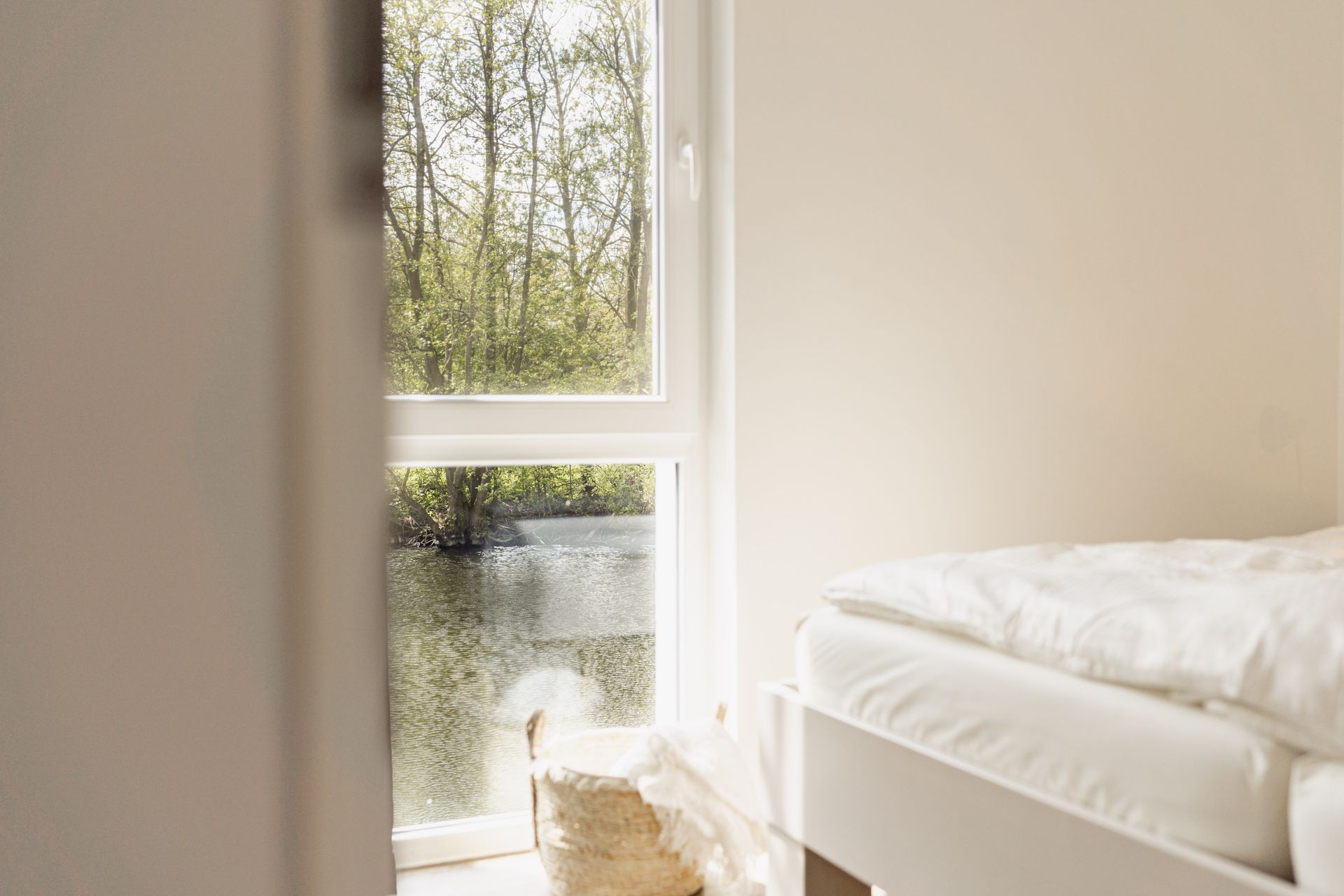 Die Erdgeschoss-Wohnung liegt direkt am Wasserlauf. 80qm mit 2 Schlafzimmern und einem großen Balkon direkt mit Blick auf die Enten im Wasser sorgen sofort für Erholung vom Alltagsstress. Eine offene Einrichtung sowie große bodentiefe Fenster lassen viel Licht herein. Ein großes Badezimmer mit Badewanne, Wellnessdusche und Sauna bieten zu jeder Jahreszeit Entspannung.